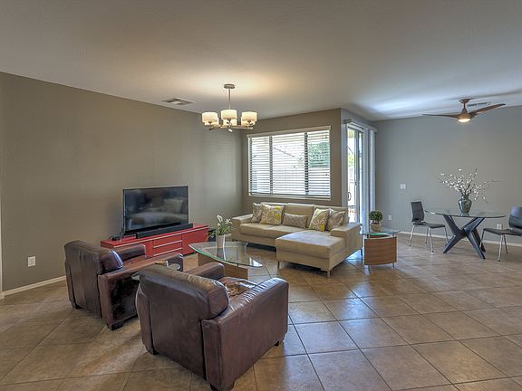 Fantastic single level, 3 bedroom + den, 2 bath home in the desirable Lyons Gate Community! This home has a great floor plan featuring 18 inch tile, cherry cabinetry, granite counters, tile backsplash, under counter lighting and stainless steel appliances. Perfectly situated directly on an HOA-maintained greenbelt, surrounded by single level homes and conveniently located near a community pool, playground and basketball court. Across the street from Agritopia & Joe's Grill, close to shopping, entertainment, restaurants, a dog park and freeways. This house is a gem and won't last long!