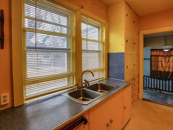 Price Change! Built in 1912, as a 2 bedroom home, could add a wall and closet and easily be a 2 bedroom again! The living room is an "L" shape. Large dining room. Cute pink bathroom fixtures. Lots of cabinets in the kitchen. Laundry is an addition to the house, off the kitchen. Basement is full and unfinished. One car detached garage. Garage has additional storage behind. Then there is a large metal canopy for more car coverage! Storage shed in the East yard.