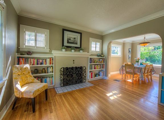 Charming Sellwood Dutch Colonial on quiet street, shops and restaurants nearby, farmers market on Wed, walkability score 92.3 bdrs and full bth upstairs, 1/2 bth down,large living room with fireplace and quaint built-ins,formal dining room and kit with nook, arched doorways and covered patio, partially finished basement, all new windows upstairs, central A/C, Detached garage. Don't miss this cutie! Open house Sat and Sun 1-3