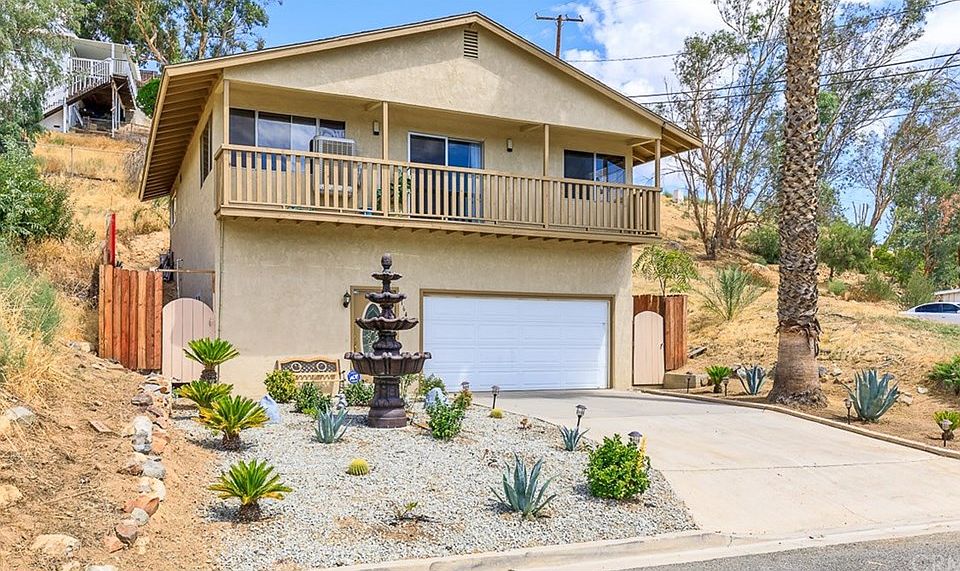 PRICE REDUCED!!! Great for commuters and close to everything! Welcome home to this cute Lake Elsinore home featuring 4 bedrooms and 2 baths with approximately 1500 sq ft of living space. This home has been recently updated with newer appliances, granite counter tops and light fixtures. Upstairs is a spacious family room with a cozy fireplace which is open to the kitchen and dining. The living area, kitchen and 3 bedrooms are on the top floor with one bedroom and the entrance to the over sized 2 car garage on the entry level. There is also extra storage downstairs. Flooring is newer and includes laminate, tile and carpet. This home offers a nice sized backyard with patio and a front yard with drought tolerant landscaping. Enjoy views of the mountains and a peek a boo view of the lake from the balcony accessed off the family room. There is central A/C as well as an evaporative cooler to help keep costs down. Walking distance to schools, parks and shopping and just minutes to the 74 Ortega Hwy and I-15 fwy. Located in a very low tax area with NO HOA. This is a great starter home and priced to sell!! Call today to view!