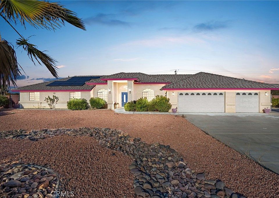Spacious, well-maintained single-story home offering 4 bedrooms, 2 bathrooms, and nearly 3,000 square feet of comfortable living in Apple Valley. This thoughtfully designed floor plan features expansive living areas, an open kitchen with generous counter space, and abundant natural light throughout. The primary suite includes a large bathroom with dual sinks, soaking tub, and separate shower, while additional bedrooms are well sized and flexible for guests, home office, or multi-use space. The home reflects pride of ownership with a clean, well-kept interior and durable finishes throughout. Step outside to a generously sized backyard highlighted by an oversized covered patio, ideal for outdoor living, entertaining, or relaxing while enjoying scenic mountain views. The property is fully fenced, offering privacy and functionality, and features low-maintenance desert landscaping, wide frontage, and ample parking with a 3-car garage. Conveniently located with room to live, work, and grow, this Apple Valley property offers space, comfort, and long-term potential.