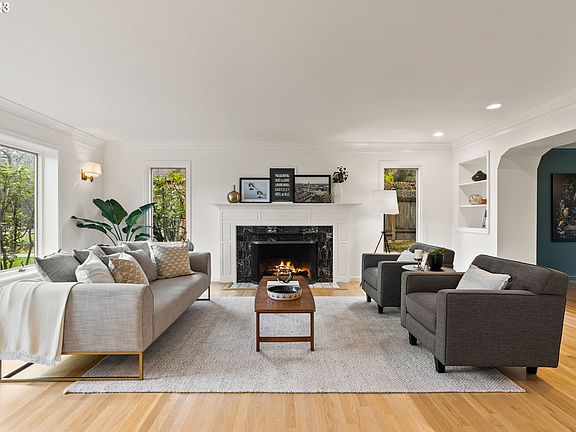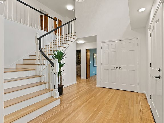 Nestled on a coveted no-through street on an almost half-acre level lot that backs to a treed green space, and minutes from top rated-LO schools and amenities, this rare property brings together the perfect blend of location, style, and modern convenience. Step inside and you'll be greeted by the grand staircase foyer with refinished white oak floors throughout the main level, leading to a formal living room and dining room, perfect for dinner parties with friends and family. The welcoming gourmet kitchen is complete with a Viking range/griddle, wine refrigerator, island, wet bar, and nearby wine cellar for the collector. Enjoy morning breakfast in the sunny windowed eating nook and adjacent after-school homework space. Unwind with movie nights by a crackling fire in the large family room perfect for gatherings. The handsome main level office, plus bonus office space upstairs, provide ample room for working from home. Upstairs you'll find a highly functional floor plan with brand new luxe carpeting throughout. The vast primary suite is a spacious sanctuary, offering seasonal Mount Hood views, large bathroom with jetted soaking tub, new flooring, and a walk-in closet. Three additional upstairs bedrooms also feature new carpet and ample closet space. The bonus loft space can be used as a media, games, or flex/fitness space. This home is filled with lovely natural light, fresh interior paint in 2022 (deck paint to be completed as soon as weather permits), gorgeous new LED lighting, 3 car garage with EV charging, Ring doorbell, and other modern updates. A spacious yard for play, beautifully updated landscaping, options for gardens or a tree house, and expansive deck ideal for grilling, entertaining and outdoor living. Located mere blocks to top Lake Oswego schools (backs to Hallinan Elementary), George Rogers waterfront park, trails, the river, New Seasons Market, vibrant amenities, and all in a highly desirable neighborhood, this is truly an exceptional home.