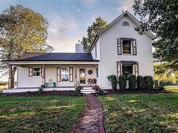 Gorgeous farmhouse on 18.5 acres! Beautiful land with stocked fishing pond, perennial flowers, some trees and spectacular views! Lots of outdoor living space including an amazing screened-in porch with removable doors + HUGE back patio with stamped concrete. Home has been masterfully remodeled while keeping that perfect farmhouse rustic charm featuring barn doors, repurposed antiques, barnwood accents, wood beams, shiplap and more! First floor is pretty open with living room, spacious kitchen, dining area + hearth room, and family room + main floor bedroom and bathroom. Upper level features 2 bedrooms and a large bathroom with dual vanity sinks. Huge detached 4+ car garage/outbuilding has a propane heater an built-in workshop area. Above the garage is an adorable studio apartment with full bathroom! There is also an outdoor garden shower to enjoy! Come tour this one-of-a-kind property and fall in love!