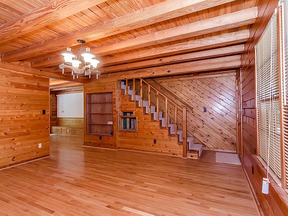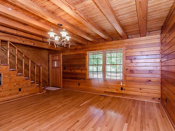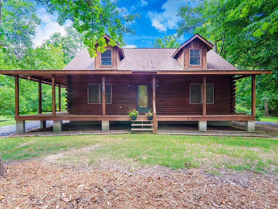 One of a Kind! True Log Cabin just minutes to Locust and Albemarle. Hwds. on main with master on main. Two full baths on main as well. Open Kitchen, rocking chair front porch and lovely screen porch. Circular Driveway and 2 car detached garage w/separate storage room and covered area great for a boat or equipment. The sound of running water is nearby with creek full of fish. Some of property is in flood area, but not home. You won't be disappointed w/this house.