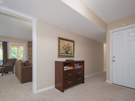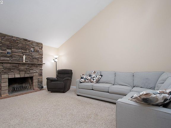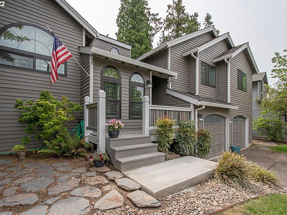 Park like setting, feels like a green space lot (17,860 SF is all yours). Very private. Large living room with fireplace open to dining room and large outdoor deck. Kitchen with stainless appliances, slab counters, wood flooring and nook. Vaulted Ceilings & Skylights. All new Anderson Windows and Milguard sliding doors installed May2022. Great outdoor space perfect for a bbq and kitchen. Close to Tigard High. Easy access to Hwy 5 and 99.