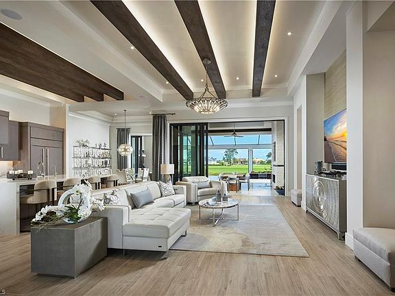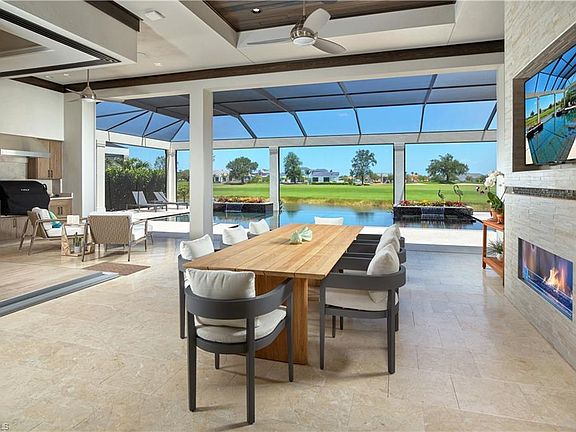 Recently completed custom home MOVE-IN READY for January 2020. Located in highly desirable Seneca neighborhood of Award Winning Community Talis Park. This beautiful home comes with a gorgeous water and golf course view facing towards the Firenze neighborhood. Complete with a clean and contemporary styled interior, this gorgeous home boasts a large kitchen island, spacious dining area, and 90 degree pocketing doors overlooking a negative edge pool and an oversized marble tile screened lanai which includes an outdoor kitchen and fireplace. This floor plan includes four bedrooms plus a study, an air conditioned garage ,generator, and a whole-house water filtration system. This incredibly detailed and custom-designed home has too many extras to list! Must see to appreciate. Call for appointment for viewing.