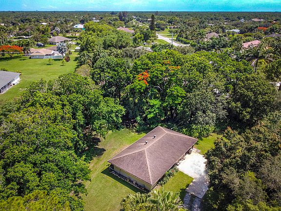 This CBS 3 bedroom/2 bath/1-car garage home is located on a 1.15-acre corner lot surrounded by some of the most expensive homes in Palm Beach Country Estates. Heavily wooded property with plenty of shade and privacy. The north side of the lot fronts a paved road. Handyman special....mostly cosmetic. Live in this one while you build the dream home and keep this one as a guest house. Perfect position on the property for that scenario which is rarely available. Hooked-up to city water. Reproduction of a comparable guest house would easily exceed $250,000.