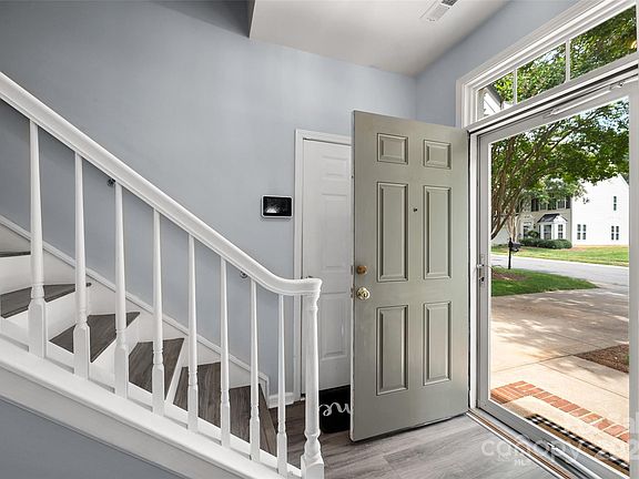 Step into style and comfort with this beautifully designed 3-bedroom, 2.5-bath townhome with the primary bedroom on the main level. Bedroom suite features a tray ceiling and nice bath with garden tub, separate shower, and spacious walk-in closet. The heart of the home is the light-filled, 2-story vaulted great room where soaring ceilings, a gas log fireplace and expansive windows create an inviting atmosphere. The kitchen is a showstopper with shaker cabinetry - including glass-front uppers with trim details - granite countertops, subway tile backsplash, stainless steel appliances, and a smooth cooktop range. A sunny bay-window dining area completes the space. Upstairs, two additional bedrooms each boast walk-in closets, while a versatile flex space offers endless possibilities - whether for a home office, playroom, den or cozy sitting area. There’s also the added bonus of floored walk-in attic space providing convenient storage. Outside, enjoy a big privacy-fenced backyard with patio and wooded natural area behind, making it an excellent place for cookouts with friends, enjoying your morning coffee, or winding down at the end of the day. Set in a welcoming community with greenway walking trails and located just minutes from I-85, shopping, and dining, this home delivers both comfort and convenience.