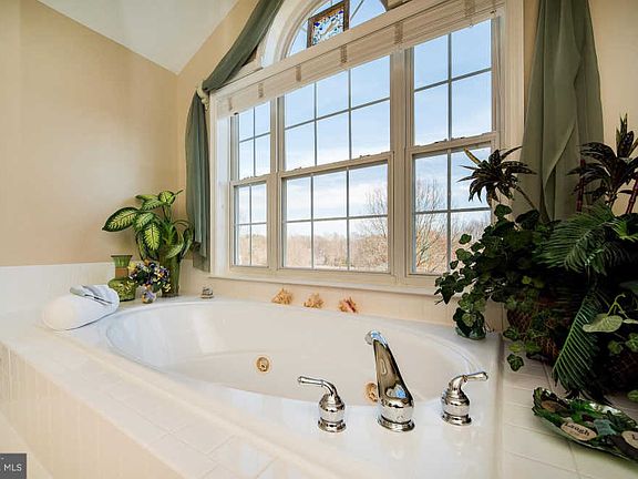 5 Bedroom 3 1/2 Bathrooms, Study, Sunroom, Finished Basement with Full size Bathroom, Large Laundry Room, Office, 1 acre lot sits on a hill, Gazebo ~Large Landscaped yard. Private backyard that backs to woods. 12 x 24 Shed~Oversized driveway. Front with 6~ windows with Transoms. 4-year-old Heat Pumps with Propane back-up.Water Softener- Well Pump replaced 2015. Oversized garage. 2 Story Dramatic Foyer. New 3~ Bruce Hardwood floors on first floor. Stunning Kitchen/Sunroom/Step-down Family Room with open concept layout and 11' ceilings. Cherry Cabinets, 3 year old Stainless Steel Appliances, Oven and Microwave convection- Island with cooktop and seating. Floor to ceiling Stone Fireplace- 11~ Ceiling. Master Bedroom and Sitting room- 3-sided Fireplace. Cathedral Ceiling- 2 large walk-in closets. Master Bath- 6~ tiled Jacuzzi tub with deck- Tiled Floor- Large window with 2 side windows and transom- Large cherry vanity with New Granite Countertop, double sinks and fixtures. Walk Out Basement.