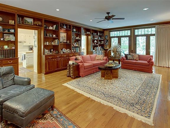 This stunning English Country style home was custom built by Vernon Wilson. Designed as a timeless classic, featuring complicated, heavy moldings, archways, 4 fireplaces, lots of built-ins, vaulted ceilings, so much more. Large living areas with great flow, perfect for entertaining. Nestled back on 5.6 acres, it offers lots of privacy, & year-round wooded views of Uwharrie Mtns. Meticulously maintained. Walk-out basement has FP, custom cherry bar w/stain glass of Napa Valley, hot tub, wine cellar.