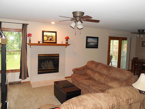 Custom built open floor plan ranch with wonderful northside 3 seasons porch off dining room. Gas fireplace with marble surround. Main floor master bedroom suite with vaulted ceilings and full en-suite bath and walk in closet. Main floor laundry. Generous sized family room with 4th bedroom ( no closet ) on walk out lower level. Terrific storage areas. Newer gas water heater and softener. 90+ furnace. Good curb appeal and attached two car garage with side yard access. Newer asphalt driveway. Durand Schools. Close to front gate but in quiet location with pleasant northerly views.