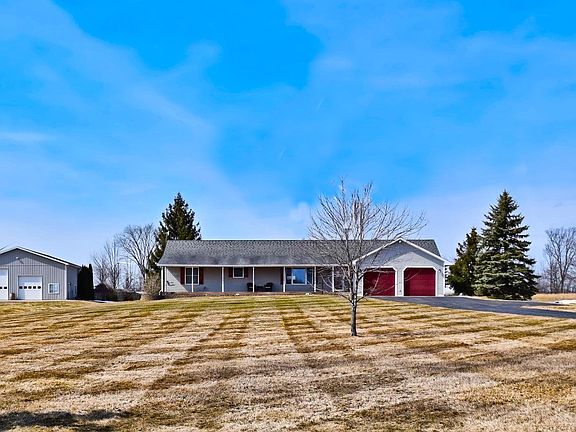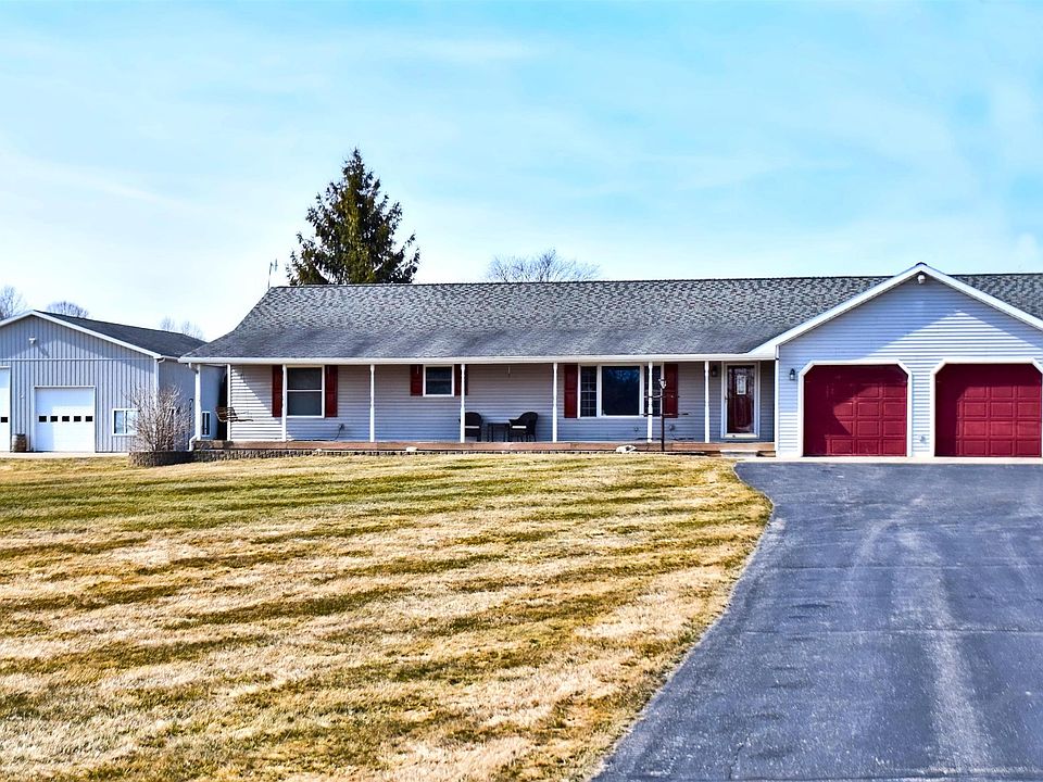 Here is your ranch home that has it all! Step into this well maintained, beautiful ranch home with full finished basement that sits on 2.5 acres. This home is located just out of town, with the private country feel. Need a place for all of your toys? Check out the 40 X 64 heated outbuilding with 14' ceilings and plumbed with an existing bathroom space. Walk inside to the new sunroom/porch addition that can be enjoyed through all of the Michigan seasons. The home features a large, open concept space, tall ceilings, island kitchen, gorgeous granite countertops, newer kitchen appliances, 3 main level bedrooms, 2 full spacious bathrooms, main floor laundry, huge 2 car garage and more! Looking for even more space? Walk down to the full finished basement that features a huge living space, 2 sizeable bedrooms with egress windows, an office, and substantial amounts of storage space and shelving. A new driveway will be set to the outbuilding on 3/27/2023. There is placement and hookup for a wood burning stove for outbuilding and home. Personal property not included in sale: propane tank (home), hot tub (negotiable for price), steel flower pot holder (in front), ALL TVs and Mounts will be removed. Windmills do surround this area and are not seen in pictures.
