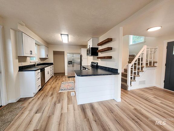 Get ready to fall in love with this charming Burley, Idaho home that boasts a spacious floor plan, gorgeous finishes, a 22x22 detached shop and unbeatable location! The open and airy layout creates a sense of flow and allows for flexible use of each room. Enjoy a brand new kitchen equipped with stainless steel appliances and plenty of cabinet space. Move in ready with new luxury vinyl flooring and carpet throughout the home as well as fresh paint. Outside you'll find a brand new professionally installed roof and exterior paint. Conveniently located just blocks from John V, Evans, Burley Jr High and Burley High Schools as well as local parks, swimming pool and Oregon Trail Recreation District. **Seller is offering a credit of $10k towards closing costs or rate buy down!** Call today to schedule a tour!