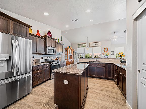 Turnkey Luxury! This gracious single-level 4 bed, 2 bath home is situated on a spacious corner lot in a quiet North Medford neighborhood convenient to schools, shopping, medical, and more! Light and bright throughout with a split bedroom floorplan, vaulted ceilings, gas fireplace with tile surround and mantle, abundant storage, and a dedicated laundry/mud room with built-in cabinetry. Oversized kitchen open to the dining and living areas featuring a center island, granite countertops, ss appliances, and pantry. Beautiful primary suite with a luxurious soaking tub, dual sink vanity, huge walk-in closet, and private water closet. Fully vinyl fenced backyard with a covered patio, ideal for entertaining. Finished, 2-car garage, covered front porch with mountain views, lovely garden, and mature, easy-care landscaping. Don't miss this fantastic property!
