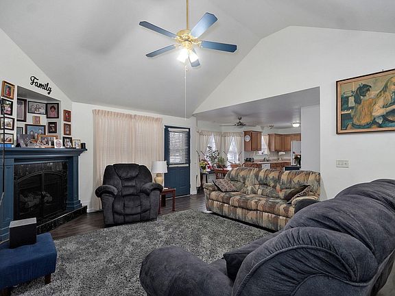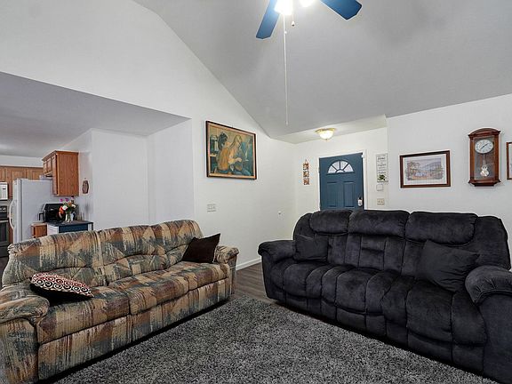 Welcome into this cozy tremendous home with 1,412 sq.ft. featuring 3 bedrooms, 2 full bathrooms, (1 w/walk-in shower), 2 car garage. This home was built in 2003, including a vaulted ceiling in living room with gas log ventless fireplace! Walls all freshly painted white along with new flooring; mainly luxury vinyl plank, vinyl tile in bathroom, and two bedrooms with new carpet. The fabulous backyard has a newer covered deck, 2 out buildings;(one with heat/cool, electrical), 6 foot privacy fence, as well as invisible pet fence in backyard and front yard. The primary suite bathroom has two walk-in closets, walk-in shower, and two sinks. No HOA fee. The home has handicap accessible features throughout,(buyers are welcome to remove after purchase, if needed). The kitchen has a newer electric range and plenty of cabinet storage. The laundry room is opposite to the pantry closet. The roof was replaced in 2023! Located near Rutledge Wilson Farms, shopping and a short distance West of the Menards of West Sunshine Street.