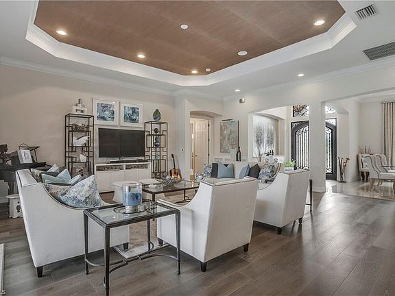 This luxurious and best selling Langford home plan, shows better than new! The Sellers continuously made custom home improvements throughout their 5 years of original ownership. Tastefully decorated to a designer's level, and with SO MANY UPGRADES AND CUSTOMIZED IMPROVEMENTS, they had to be listed separately. The kitchen's new JENN-AIR 84 inch refrigerator allows ample storage! This home, located on the (Ph1) Premium Lot #2, Songbird Court cul de sac, offers views of 2 lakes and water displays. The high-end improvements include new iron front doors with decorative impact glass. The home has a whole house generator, propane powered, with underground 500 gallon LPG storage tank. The home is also equipped with a water filtration system. The air conditioned garage, has a new suspended overhead storage system. The lanai's panoramic screens allow unobstructed views of the lake and water fountain. Relax by the new poolside propane gas fire pit. Enjoy entertaining at the customized outdoor kitchen with vented hood. The heated salt water pool, lap lane, spa and waterfall is managed by a Jandy/Aqualink system. This home needs nothing, just new owners. Your personal paradise awaits you.