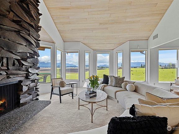 Four seasons of spectacular, sweeping mountain and pastoral Skagit views from this spacious, custom NW contemporary. A robust construction framework of sophisticated design, yet compelling simplicity, provide an environment ideally suited for relaxed living & entertaining. Open floor concept w/vaulted ceilings, resulting in an abundance of light w/continuous visual flow throughout. Generous room proportion, stunning floor to ceiling basalt fireplace, main flr primary suite, perfect work from home office space. Backyard oasis of fun w/fab outdoor, covered pool, patio & deck space. Circular drive, fully fenced, garden, greenhouse & sportcourt. RV garage is 30'x50' w/car lift, shop is approx. 24'x50'. Great access to I-5, this one has it all!