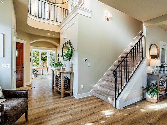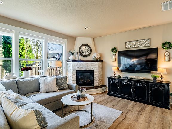 Stunning English-Style Home with Space, Style, and Character! Step into this stunning 4-bedroom, 2.5-bathroom English-style home in SW Tigard, where charm meets modern functionality. Situated on a desirable corner lot in a private neighborhood with no through traffic, this home offers both space and privacy. Built by Timberland Homes as part of the 2005 Street of New Beginnings, it showcases quality craftsmanship and thoughtful design. The hardwood floors, vaulted ceilings, and detailed trim work set a warm and inviting tone throughout. The light-filled living room features a custom, cozy gas fireplace and opens into the dining area, making it perfect for gatherings. The bright and spacious kitchen is designed for both style and practicality, featuring granite countertops, a gas range, stainless steel appliances, a central island, a pantry, and a casual dining nook—all boasting remarkable luxury upgrades throughout. A versatile downstairs office/bedroom adds flexibility to the layout, providing a perfect space for work or guests. Upstairs, the beautiful primary suite features vaulted ceilings, an oversized double vanity, soaking tub, custom upgraded walk-in shower, and a generous walk-in closet. The second floor includes two additional bedrooms, a bonus room that can serve as a home office, playroom, or retreat, and a conveniently located laundry room. The horseshoe-shaped hallway overlooks the main level, enhancing the home’s open and airy feel. Outside, the backyard is ready for your personal touch with a spacious patio already braced for a pergola and prepped with hot tub hookups. Set across from protected wetlands, it offers added privacy and a serene natural backdrop. Additional features include a central vacuum system for easy maintenance. One block from Deer Creek Elementary and minutes from King City Park, this home offers a prime location with easy access to 99W, dining, parks, and wine country. Don’t miss this incredible opportunity!