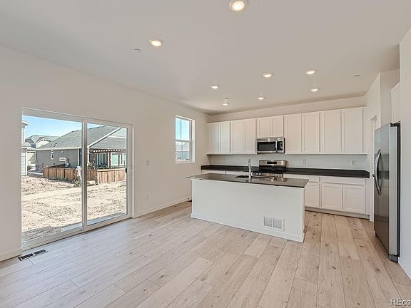 Anticipated Completion October 2024! The beautiful new Elbert 2-story in the heart of the coveted Reunion Ridge features, 3 beds, 2.5 baths, laundry, great room, kitchen, dining room, unfinished basement for your future expansion, 2 car garage and more. What some builders consider high-end upgrades, Lennar makes a standard inclusion. Boasting quartz countertops throughout, luxury vinyl plank flooring, stainless steel kitchen appliances and more, you’ll want to make this house a home. Reunion is a well established, master-planned community featuring a family friendly pool, fitness facility, gymnasium, Buffalo Run Golf Course and charming lakeside coffee house, all with an easy commute to Denver, DIA and the 470 corridor. Come see what you have been missing today! Welcome home! This home is in a metro district.