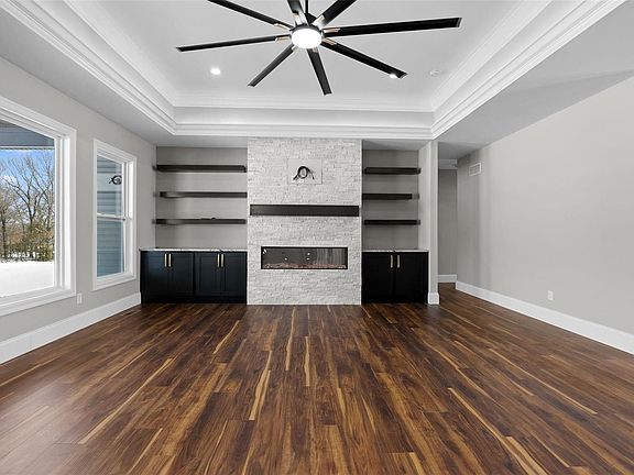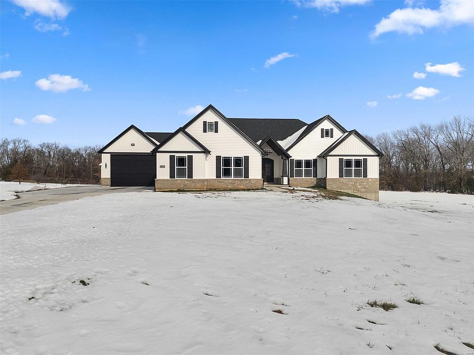 Custom new construction luxury home on 5 acres in Wright City, MO! This home features a stunning custom kitchen with an oversized granite island, full size side-by-side fridge/freezer, double oven and walk-in pantry, perfect for entertaining. The inviting hearth room boasts an electric fireplace, while the covered patio offers a peaceful outdoor retreat. Cozy great room with stone electric fireplace wall and built-in shelving. The primary bedroom showcases a sculptured ceiling with indirect lighting. The primary bathroom is beautifully designed with custom tile work, separate vanities with LED mirrors and shelving in the large walk-in closet. Spacious laundry room with cabinets and built-in cubbies. Additional highlights include an insulated 3-car side-entry garage and a second insulated 20x40 front-entry garage with 16x11.5 door for extra convenience. Basement is ready for your finishing touches with a side walk-out and rough-in bath. Enjoy this brand new home without the build time.