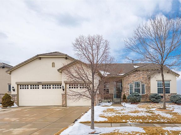 Pure Colorado! Absolutely stunning non-impeded view of the mountains and adjacent to over 70 acres of very quiet open space. Anthem Ranch recreation center. Quality built home with master bedroom and laundry on main floor. Master bath has step in tub and separate shower and large his/her walk in closet. Open floor plan on main level with wood flooring. Large kitchen with cherry cabinets, large granite topped kitchen island and stainless steel appliances. Double ovens, microwave etc. Lower level has walk out to beautifully landscaped back yard. Fully finished lower level with huge amount of storage space. This is a must see home!