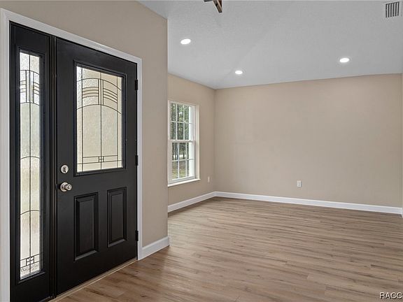 NEW CONSTRUCTION located in Royal Highlands. This gorgeous 3 bedroom, 2 bath home comes complete with a formal dining room, separate living and family room with a spacious open floor plan & soaring 12 ft ceilings. The kitchen features solid wood soft close cabinets, granite countertops, & Stainless Steel appliances. Master bathroom includes a huge walk-in frames glass shower, toilet room, walk in closets & dual vanities. Situated on .50 acres, plenty of room to store your toys or add a pool with NO HOA fees! Located just minutes from 19, this home offers a quick commute into Brooksville, Homosassa & Crystal River. Conveniently located near shopping and dining. Call to schedule your showing today! **Some photos are from a prior build-- interior paint, door color, & some finishes may vary!**