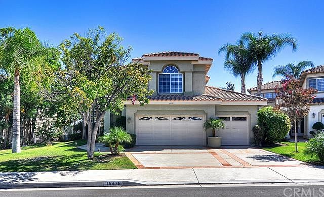 AMAZING VIEW home located on a quiet cul de sac in the Lake Hills community. This former model home offers 2650 ft of living space. Featuring 5 bedrooms and 3 baths, with one of each downstairs, this home is perfect for growing families. When you enter the home you are invited to the large formal living and dining rooms with vaulted ceilings and high end carpet. The family room, kitchen and hallway have beautiful wood laminate flooring. From the family room, kitchen and formal dining you have some of the most incredible views of the hills, city lights to Big Bear Mountain. The kitchen has recently under gone a complete renovation with new cabinets, Quartz counter tops, high end appliances and double oven. Upstairs you have a large master bedroom with vaulted ceiling and a recently rebuilt deck that allow you to enjoy the views from a higher perspective. The 5th bedroom is currently being used as an office but could easily be a bonus room as well. The backyard faces East to shade you from the hot afternoon sun, offers an in ground spa, beautiful hardscaping and landscaping and lush trees. Other upgrades included recently painted exterior, epoxy flooring in garage with ceiling storage racks.