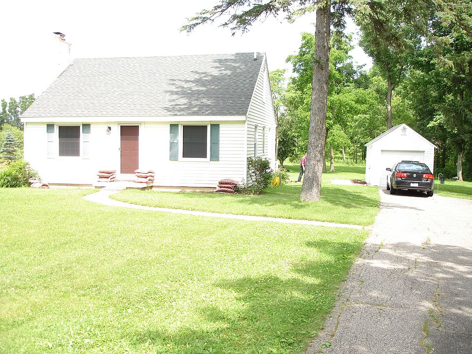 Don't let this one fool you, it's bigger than it looks. The Seller's have taken great care in refurbishing this home and it shows. Hard surfaced floors throughout the main part of the home include tile, hardwood & laminate wood floor in the master bath. The wood fireplace, with a new surround and hearth, will be a great place to gather with all your family and friends. Kitchen cabinets, counters & appliances have been updated and there is a large slider in the kitchen leading to a humongous deck. What a great spot to grill and enjoy the evenings. Both bathrooms look like they are brand new. Actually, the master is! Two bedrooms are on the main floor and the large master is on the 2nd floor. We are not finished yet. This all sits on an acre of land with a single car garage and a 2-car garage and another two car garage with a second story. Man/Woman Cave Here We Come!! You could possibly run a business out of this location. The possibilities are endless.