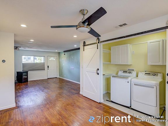 This property is available. Please inquire on this site to schedule a showing. Spacious 1 bed, 1 bath UPSTAIRS unit - AVAILABLE NOW! This home is nicely updated with hardwood floors, newer ceiling fans, recessed lighting, and neutral paint. Plenty of natural sunlight throughout! Sleek modern kitchen includes newer stainless steel appliances (dishwasher, refrigerator, gas stove.) Stylish with white cabinetry and quartz counters. Spacious living/dining room combo. In-unit FULL-sized washer and dryer! Renovated bathroom with stylish tile and light fixtures, modern vanity, and full tub/shower enclosure. Property includes off-street parking and access to an EV charger! *Heated floors in kitchen and bathroom!* Security deposit equal to 1 months rent. Garbage included, all other utilities are tenant responsibility. Cats OK w/additional $500 deposit - sorry, NO dogs.