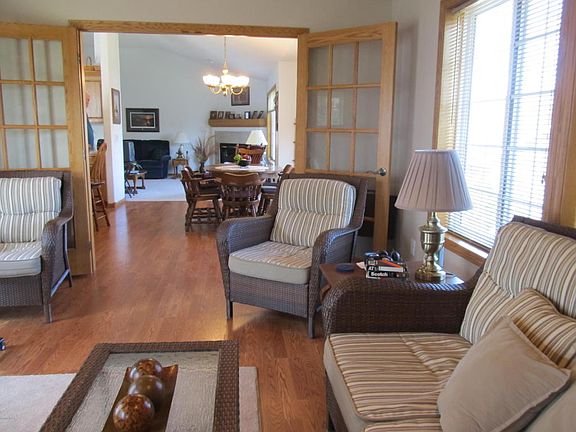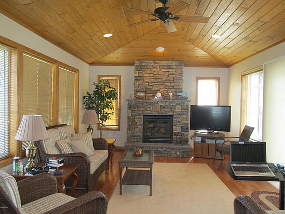 WOW! What a gorgeous, well-built home on a beautiful landscaped lot in a great neighborhood! From the moment you step in the front door you will get the nice warm and open feeling of home. The living room has a beautiful fireplace with a vaulted ceiling that opens to the dining area. The eat-in kitchen has oak cabinets with pull-out shelves, a breakfast bar, vaulted ceiling and includes all appliances. You'll spend a lot of time in the sun room with another beautiful fireplace and knotty pine ceiling! The master bedroom features a master bath and a large walk-in closet. The 2nd bedroom is currently being used as an office and has a walk-in closet with laundry hook-ups, if you desire main floor laundry. Another fireplace in the family room gives it a warm and cozy feel and features a wet