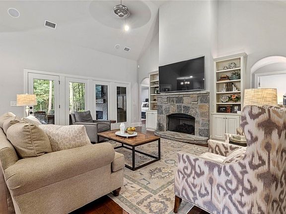 Stunning brick home in the desirable East Lake. Located in a cul-de-sac, the lot is private & wooded. Kitchen has stainless steel appliances, walk-in pantry & built-in breakfast banquette. The kitchen opens to the spacious Great Room featuring vaulted ceilings & a Stone Fireplace. Off the Great Room is the stunning Dining Room with custom wallpaper. On the main level, you will find the Primary Bedroom & Bathroom with double vanities, 2 closets, large soaking tub & private office or 3rd closet. Bedrooms 2,3 & 4 are also downstairs one with a private bathroom & large closet. 2 rooms share a bathroom. Upstairs is the Bonus Room & attic access for storage. Outside showcases a beautifully landscaped yard with a covered patio & fireplace for all of your entertaining needs. Other features include an attached 3-car garage, tankless water heater & spray foam insulation.