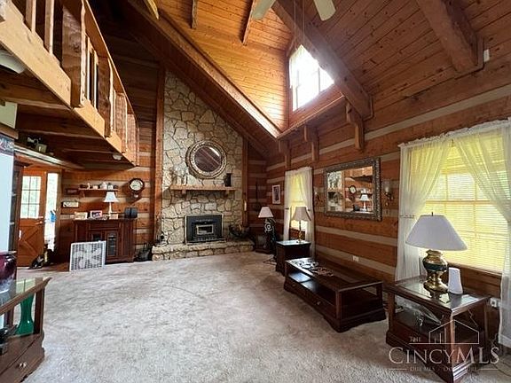 This 2514 sq ft Hearthstone Log Cabin is located on a desirable 2 acre lot. A nice country oasis to enjoy life. Your new home is located in the Ross School District. this property features three bedrooms, three and a half baths, a stone fireplace, new carpet throughout, partial basement and open loft, a front veranda and a screened in porch. Roof was replaced with dimensional shingles in 2020. The listing agent has an interest in this property.