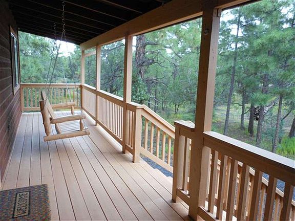 Beautiful mountain home nestled within the tall pines. Lovely covered decks provide tranquil outdoor living space. Kitchen and master bath feature granite counter tops. All appliances convey including refrigerator, washer & dryer. Under house storage with workbenches plus additional locking storage under front porch perfect for ATVs. Garage is fully finished and insulated. Furniture is available outside of escrow. Porch swing does not convey. This is a great value and a must see!