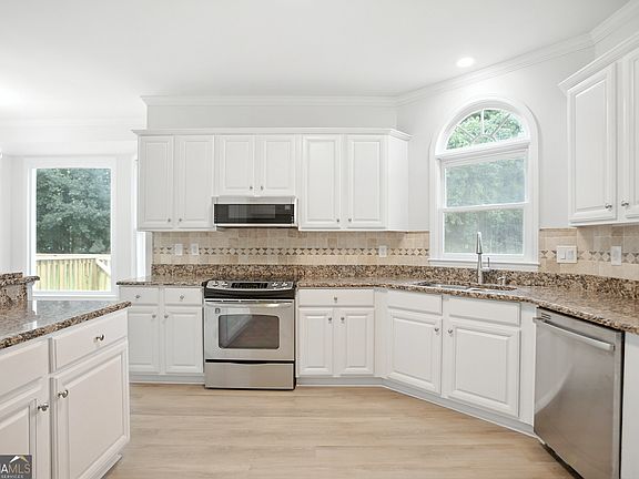 Welcome to your fully renovated retreat in Conyers! This spacious home blends modern style with move-in ready comfort. The main level boasts an open layout with a bright family room flowing into the dining area and chef's kitchen. The kitchen is complete with granite countertops, updated cabinetry, stainless steel appliances, and stylish finishes perfect for everyday living or entertaining. Upstairs, the owner's suite offers a true getaway with a spa-like bath showcasing a soaking tub, oversized shower, and large walk-in closet. The secondary bedrooms are generously sized with walk in closets. Step outside to a large deck overlooking a private backyard-perfect for gatherings or peaceful evenings at home.