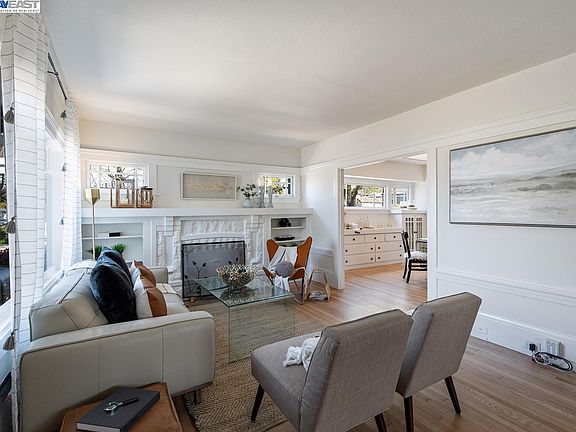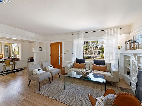 Welcome to 1648 Broadway, a stunning split level Craftsman in the heart of Alameda. This 1920 beauty offers both vintage charm and modern upgrades, giving you the best of both worlds. Original architectural details include Craftsman style multi-light windows, a wood burning fireplace and built-in cabinetry. A charming reading nook with built-in benches and vintage wall sconces could serve as a mini home office or play area, and the spacious formal dining room might host your next Thanksgiving. Natural oak hardwood floors have been newly refinished to a satin sheen, and fresh, white interior paint gives unlimited decorating options. The interior spaces are flooded with abundant natural light, and the corner setting contributes to an open feeling. Kitchen updates include elegant matte black counters, sleek wood cabinets, open shelving, and a Bosch dishwasher. A vintage O'Keefe and Merritt gas range adds a stylish yet retro vibe. The two large bedrooms are located in the back of the house, overlooking the large, lovely garden below. Walk score is 96--a "walker's paradise", close to top schools, transportation, Park Street shops and restaurants and the Alameda Theatre. Sweet!