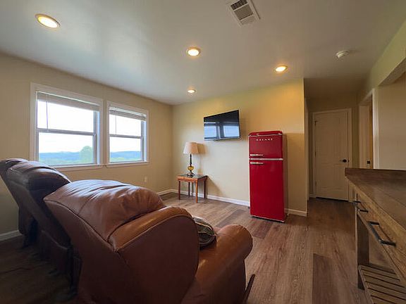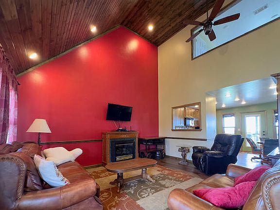 Newer construction rustic cabin on 5 acres with a view! This 2 bed, 2 bath, 2 story home has 2 living areas and a large kitchen. It also has a big front AND back porch. Property is a short drive to Mountain View but still privately located out in the country. It also has a storage building.