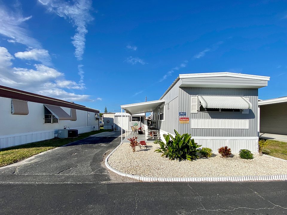 Listing in Merritt Island Village Adult Park Fantastic deal on this UPDATED, Clean, Move In Ready 2 bedroom, 1.5 bath home ! Home Features: ~Metal roof over updated 2017 ~Central Air/Heat updated 2016 ~Skirting updated 2018 ~Exterior Painted with added Clam Shell shutters in 2020 ~Nice size Landscaped lot with outdoor patio (roll down shade included) ~Large insulated shed/workshop with window AC, washer/dryer - YES the bicycle remains ! ~Interior of the home has been painted and modernized, SO Lovely inside ! ~Updated flooring throughout ~Bathroom, shower/tub, vanity, faucets and toilet updated ~All Furnishings and Kitchen / Bath essentials included ( personal Items, TV, some art decor excluded ) Merritt Island Village is a 55+ adult community -The lot rent is currently $475/month- including water (3kg), sewer, trash/recycle pickup, and basic lawn care. -Full background check is completed on all new owner's - $20.00 fee per person. -1 small animal under 25lb permitted with park approval. -RV/ Boat parking may be available, check with management. -No motorcycles permitted. -No rentals permitted. All listing information is deemed reliable but not guaranteed and should be independently verified through personal inspection by appropriate professionals. We do not and cannot guarantee or warrant the accuracy of this information or condition of this property. Measurements are approximate. The buyer assumes full responsibility for obtaining all current rates of lot rent, fees, and pass-on costs. Additionally, the buyer is responsible for obtaining all rules, regulations, pet policies, etc., associated with the community, park, or home from the community/park manager. We are not responsible for quoting of said fees or policies.