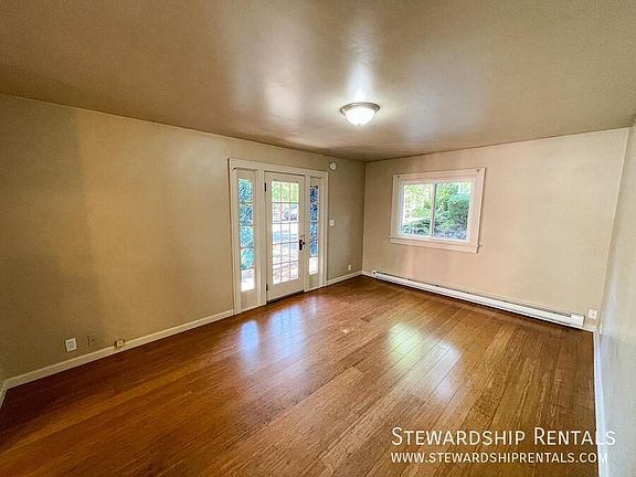 This charming and spacious 4 bed/1 bath house is ideally located at E. 24th & Agate, just a few blocks from UO Campus and Hayward Field. Features hardwood floors, open living room/kitchen, carpeted bedrooms, and washer/dryer included. This home does have a studio situated above the back the of the house. $100 monthly utility fee covers water and sewer. Residents are responsible for electric and garbage. *Properties will only be shown to approved applicants* No application fee! Carpet Close To University Of Oregon Electric Baseboard Heat Electric Heat House Pets Allowed Quiet Neighborhood Vinyl Windows Wall Heater Washer & Dryer In Unit Yard Care Provided