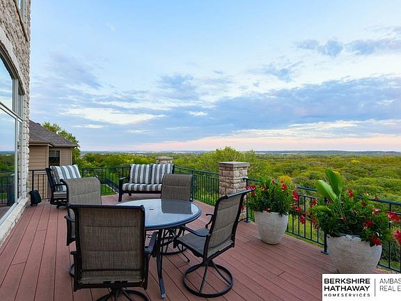 Extraordinary 1.5 Story Masterpiece with Panoramic Views of Iron Horse Golf Course, Nature, Platte River & Forest! All-stone exterior, commercial-grade retaining wall, composite deck, fenced bkyd (iron) & prof landscaping. Absolutely exquisite interior w/expansive windows, soaring ceilings throughout & refined wd finishes. Grand entry is flanked by formal dining rm & stunning living/music rm w/floor-to-ceiling bayed windows & marble flr. Two-story great rm w/wall of windows, XL stone fireplace w/custom built-ins & open catwalk to upstairs library & walkways. Main flr primary bdrm suite w/fireplace & luxurious bath. Gourmet kitchen has highest quality cabinetry w/granite, stainless appliances & additional pantry. Private den/office w/built-ins & paneled walls. 2nd flr offers library, 4 large bdrms w/private baths & walk-in closets, rec rm w/deluxe wet bar & 1/2 bath - perfect for entertaining. 18-hole championship golf course, access to private lake & 20 minutes to Lincoln/Omaha.