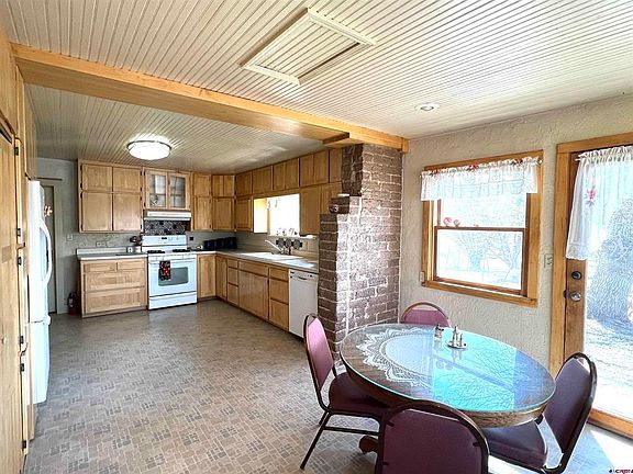 Welcome to your own cozy, comfortable farmhouse nestled on a producing 10.2-acre farm. This property is bursting with life and endless possibilities. When you step into the charming 1892 square foot home, you are sure to feel the home wrap its arms around you. On the main floor, you'll find the primary bedroom, living areas, and a spacious kitchen. From the dining room table, you will enjoy watching the wild turkeys, deer, birds and many aspects of nature. Venture upstairs to discover additional bedrooms, offering ample space for your loved ones or guests. Outside, the property is a haven for gardening and nature enthusiasts. With irrigation sourced from the year-round flowing Ute Creek, your land stays lush and vibrant year-round. A large 2-car garage/workshop provides ample space for storage or tinkering on projects, while a chicken house and dairy barn offer opportunities for hobby farming. The dairy barn even features a convenient drain trough, ideal for housing whatever animals you desire. A pipe top rail fence secures an area for pasture and animals, and has had heavy hay production in the past. The permitted well boasts 15 gallons per minute according to the permit, ensuring a steady and reliable water source for all your needs. The current owner has cultivated over 15 orchard trees, boasting a variety of fruits including apple, peach, cherry, pear, and crab apple. A dedicated garden area has provided sustenance and joy for years, ready for your green thumb to continue its legacy. A cellar, with a climate controlled room will come in handy for your harvest. On the East side of the property, another entrance beckons you to explore breathtaking landscapes that will leave you feeling on top of the world. Enveloped in trees and wildlife, this area offers stunning views of the surrounding mountain ranges and presents the opportunity to build your dream home, making this property truly unique. But that's not all – an additional front entrance to the home provides the perfect setup for a separate living area, complete with its own sink and refrigerator. Plus, with a camera security system in place, peace of mind comes standard. There is plenty of parking for an RV, along with electrical hook ups. Don't miss out on the chance to own this extraordinary piece of property where nature thrives and endless adventures await. Schedule your showing today!