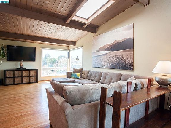 Beautiful mid-century home w/spacious open floor plan & tranquil feel. Spectacular views of the bay. Large LR/DR & BIG eat-in kitchen. Updated baths. Vaulted wood & beam ceilings, skylights & abundance of windows. SL compliant,2012 bathroom remodel, new roof, comprehensive energy,seismic retrofit.