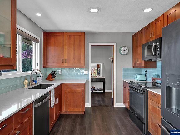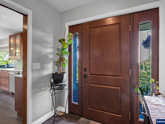 Peace and serenity welcome you to this private North Albany retreat, tucked away at the end of a quiet dead-end street. Step into your own backyard oasis, complete with a personal sauna, hot tub, and fire pit area surrounded by mature trees and timber bamboo that provide exceptional privacy. Wrap around deck perfect for evening BBQ's with Views of Mt. Jefferson! Inside, the front door opens to a beautifully appointed kitchen featuring updated cabinets, quartz countertops, and GE finger-proof slate