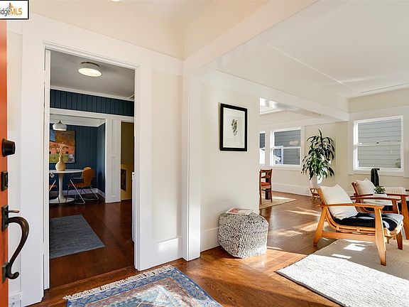 Light, sunny spaces showcase the Craftsman details of this charming 1921 home in the picturesque Piedmont neighborhood. On the raised front porch, a colorful front door opens to a spacious, sun-filled living/dining room and its welcoming fireplace. Decorative built-ins, dark hardwood floors, and a playful color palette create a warm ambience. In the updated kitchen, a cozy breakfast nook with beadboard walls sets a subtle period tone. Off the skylit upper hallway, two bedrooms overlook the leafy back yard and patio. Downstairs, a bonus flex space presents myriad possibilities. The home is moments away from shopping and dining on Piedmont, Grand, and Lakeshore Avenues. The Transbay bus, local bus lines to BART, and casual carpool are close by. The home is served by top-rated Piedmont schools including Beach Elementary School. This is a lovingly cared for, warm and welcoming refuge, just now entering its second century of sparkling life.