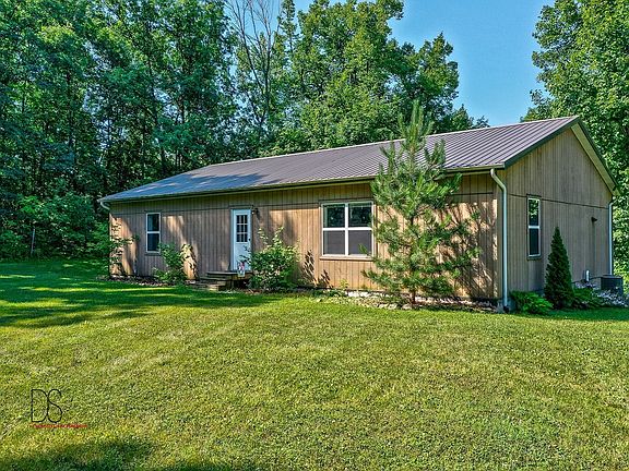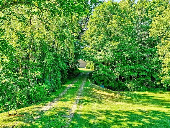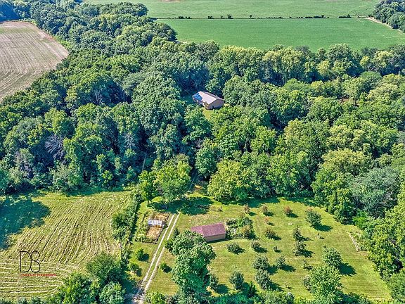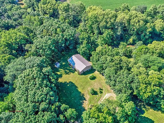 Rare opportunity to live on nearly 4 acres of private woods on Big Indian Creek. With over 280 feet of creek access in the rear and a small creek running through the center, the opportunities to enjoy nature at its best are bountiful. Cleary Building home is an open concept two bedroom/one bath home with eat-in kitchen open to living room; walkout basement and garage door leading to backyard/creek view. Easy to add additional bedrooms on either main floor or basement. Property is home to dozens of fruit trees including apple/plum/cherry/peach plus grape vines. Building for horses/bee-keeping area. Extraordinary property! Photos #26-#32 are photos of Shabbona County Park nearby. All dimensions are approximate.
