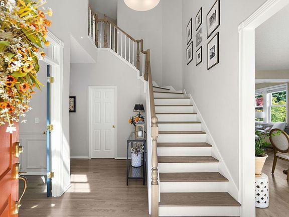 Timeless design, thoughtful updates, and a prime Cedar Mill location come together in this beautifully updated home in the Bauer Crest neighborhood. Step into a dramatic two-story entry with hardwood floors and sunlit spaces throughout. The stunning 2021-remodeled kitchen includes quartz countertops, ceiling-height two-tone cabinetry, black stainless steel appliances, a gas cooktop, built-in oven/microwave, herringbone tile backsplash, and a large prep island. A bright eating nook leads to the backyard, and the adjacent great room features a gas assisted fireplace and garden views. Additional spaces include a dedicated office with French doors and wainscot paneling, a formal living room with a fireplace, and a dining room with backyard views. A refreshed powder bath and laundry room with utility sink complete the main level. Upstairs, the spacious primary suite offers tray ceilings and a spa-like bath remodeled in 2024 with a soaking tub, walk-in shower, dual vanities, and custom tile. Four generously sized guest bedrooms (2 with walk-in closets) and an updated hall bath offer flexibility for every need. Outside, enjoy a large paver patio, freestanding hot tub, and a level, beautifully landscaped back yard—perfect for entertaining or play. Major System updates include: 50 Year Roof in 2015, Interior Paint 2024, New AC and Furnace June 2025. A 3 car garage and 3 separate storage areas provide incredible functionality. The quiet, no-through-traffic neighborhood offers a pedestrian path to the Terra Linda Neighborhood, Elementary School and Park. With Top-rated Beaverton schools and minutes from Cedar Mill library, shops, restaurants and Sunset Highway, this location can’t be beat.
