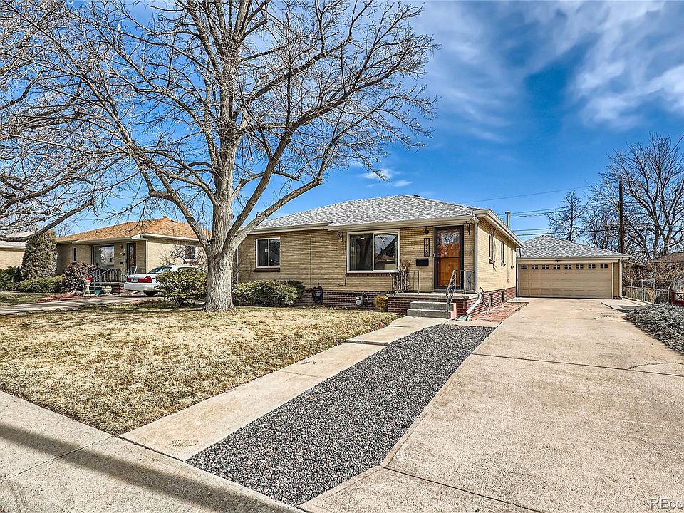 Step into this turn key remodeled brick ranch, boasting a seamless blend of modern upgrades and timeless charm, making it move-in ready for its new owners. This 1,892 square feet home features 3 bedrooms + office, and 2 bathrooms. Recent renovations include newer windows, roof, and a new sewer line, ensuring both reliability and peace of mind. The kitchen shines with new stainless steel appliances, countertops, cabinets, and tile backsplash, creating a stylish and highly functional space. The main floor offers two inviting bedrooms, an updated full bathroom, and large dining room, enhancing the home's appeal for both everyday living and entertaining. Head into the basement where you'll find a spacious family room, additional bedroom, remodeled bathroom, office space, and a gorgeous laundry room. Step outside to unwind or entertain under your expansive covered back patio, with a new fully fenced back yard. In addition to the oversized 2 car garage, enjoy an extra 4 off-road parking spaces on your long driveway. Nestled in the quiet, centrally located in Denver’s Mar Lee neighborhood, this perfect property features tons of recent upgrades. Brand new kitchen, new paint, new carpet, new solid core doors, dimmable LED recessed lighting, newer water heater, new 200amp electrical panel, and newer roof, sewer line, and windows. With easy access to 285, 6th Ave and I-25, this home makes it easy to commute downtown, or make a quick getaway to the mountains.