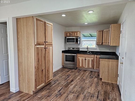 So cute and so clean! This little house just received a complete makeover down to the studs. Every is fresh and new. The compact kitchen features granite slab counters, new cabinets and new FS range with built-in microwave. The carport could easily double as a covered patio adding to the living space. The driveway was just paved and you won't believe the views in the back. There is a nice little back yard and views of Roseburg, down to the fairgrounds and over to Mt. Nebo.