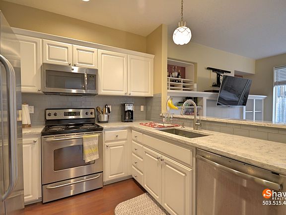 Fabulous, modern end-unit townhouse! Easy living in this light-filled home with open floor plan, hardwood floors, stainless steel appliances, quartz countertops and private fenced-in yard. Charming details: built-ins, gas fireplace, pendant light fixtures, ceiling fan. And amenities: pool, hot tub, club house! Great location near nature park, Nike, Intel, Costco, Max line! Open Sun 1-4 pm.