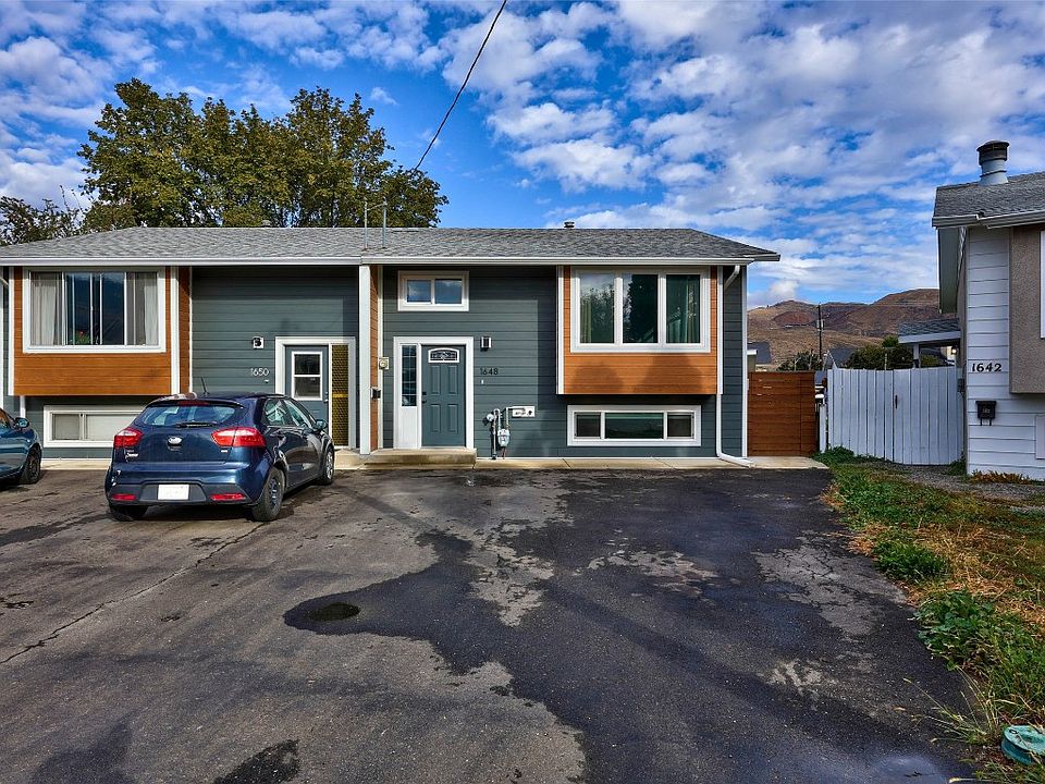 Welcome to this beautifully updated 4-bedroom, 2-bathroom half duplex on quiet Spartan Place in Kamloops. This home has been completely refreshed inside and out, offering modern style and functionality throughout. The main floor features a bright open-concept layout with a spacious living area, dining space, and a fully renovated kitchen showcasing quartz countertops, updated cabinetry, and stainless-steel appliances. Two bedrooms on the main level provide excellent family separation, while the updated 4-piece bath adds a clean contemporary feel. Downstairs offers a rec room, two additional bedrooms, laundry and a modern 3-piece bath — perfect for guests, teens, or a home office. Step outside to a private, fully fenced yard ideal for kids, pets, and entertaining. The outdoor shed is heated and equipped with electricity, offering excellent space for a workshop, hobby room, or additional storage. Updates include windows, flooring, paint, trim, lighting, bathrooms, and more, making this home truly move-in ready. Conveniently located near schools, shopping, and transit, with plenty of parking and great curb appeal, this is the perfect turn-key property for first-time buyers or investors alike.