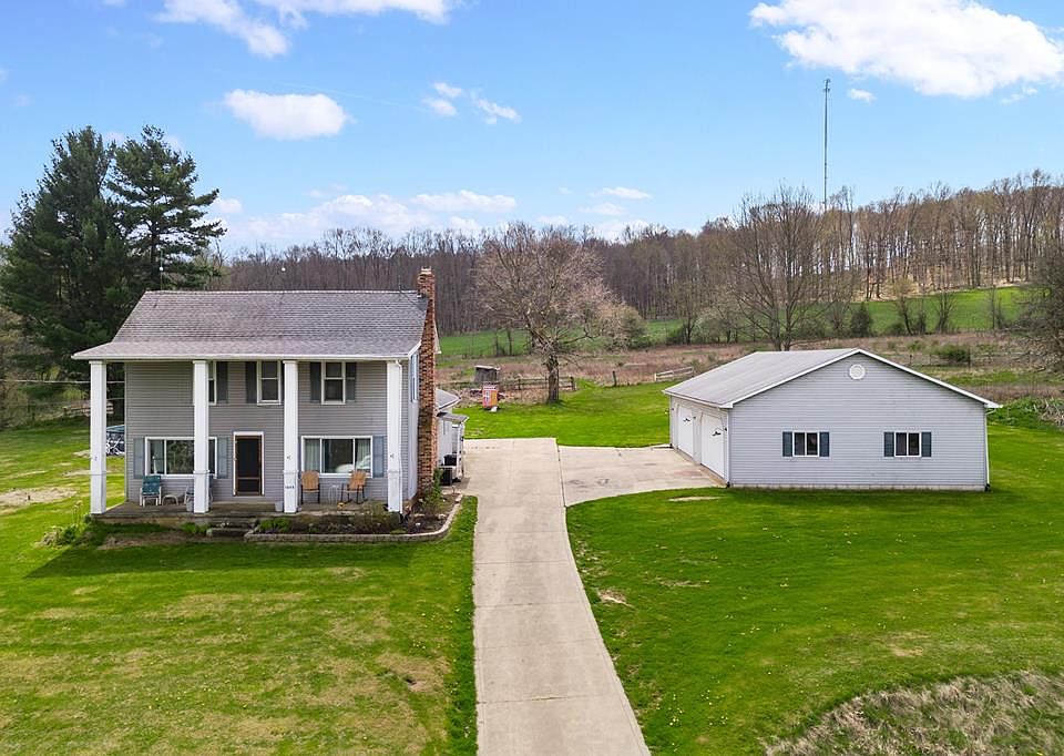 Just in Time For Your Dream Home! This charming country home is nestled on 5 acres of sprawling land. The centerpiece of if it, is the openness of the dinning room and living room area with a stone wood burning fireplace. A remodeled kitchen and bathroom exudes a modern elegance, every corner is a blend of country comfort and style. The spacious 4 bedrooms offer ample space for relaxation, while the four-car garage with work area caters to all your needs. Outside, an above-ground pool awaits lazy summer afternoons, while a serene pond adds a touch of tranquility to the landscape.